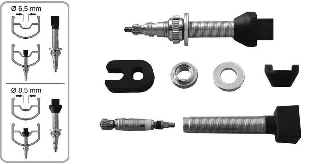 Vyměnitelný ventilek s gumovou základnou, která zaručuje dokonalou těstnost mezi ventilkem a ráfkem.