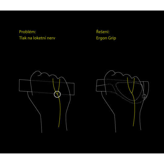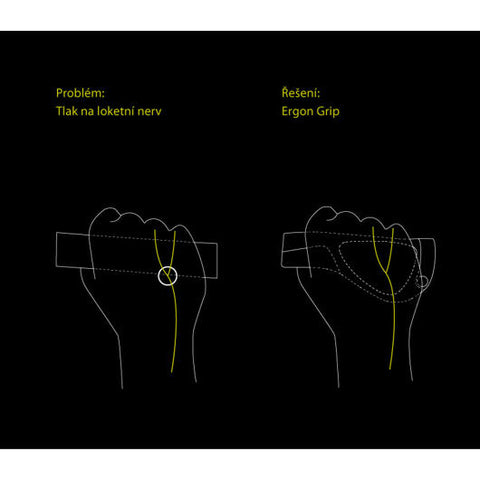Gripy Ergon GP2 využívají rohy s prostorem pro dva prsty, což přináší další pozice úchopu a lepší stabilitu při stoupání. Úhel rohů může být nastaven nezávisle na úhlu gripu pro jeho perfektní přizpůsobení. Objímka zafixuje grip na místě a zabraňuje jeho pohybu při jízdě. Gripy účině působí proti znecitlivění rukou, bolestem prstů a unavě předloktí. Speciální certifikovaný materiál vyvinutý v Německu zaručuje špičkovou kvalitu. Gripy jsou kompatibilní s karbonovými řidítky.