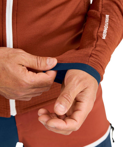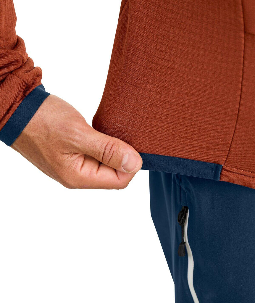 Technický materiál MERINO FLEECE GRID je z vysoce kvalitní Merino vlny a na vnitřní straně má strukturu mřížky, takže výborně odvádí pot a reguluje tělesnou teplotu. Kanálky zároveň vytvářejí vzduchové kapsičky, díky kterým mikina skvěle tepelně izoluje. Exponované partie jako hrudník a ramena, jsou před větrem a mrazem chráněny vsadkami z materiálu MERINO FLEECE LIGHT.