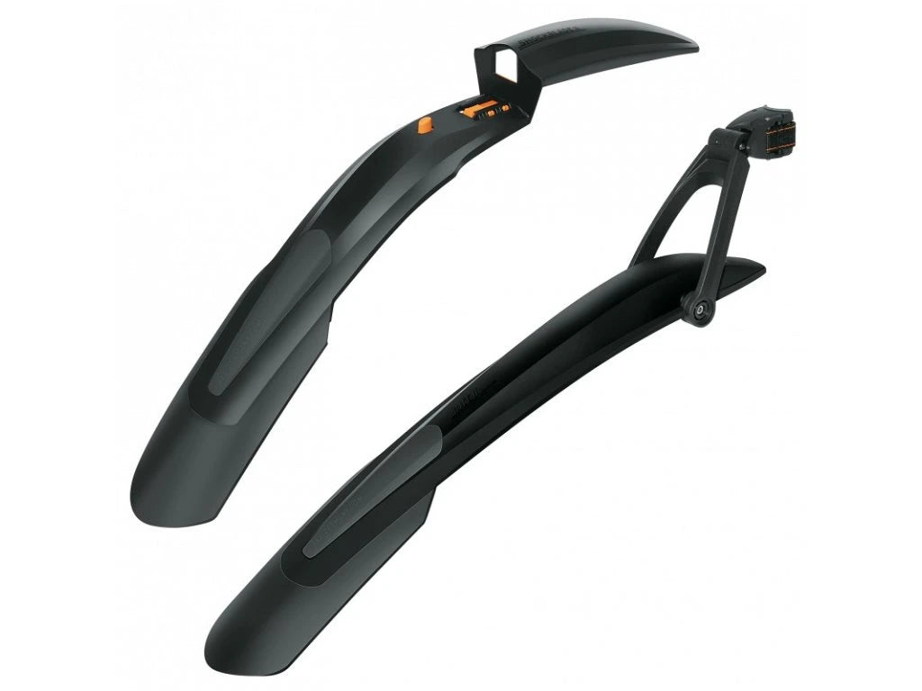 Sada blatníků SKS Shockblade a X-Blade pro 29palcová a plusková 27,5 MTB kola v decentním černém barevném provedení. Rychloupínací montážní systém usnadňuje montáž blatníků do přední vidlice a na sedlovkou trubku. Součástí dodávky jsou 2 kónické adaptéry mezi 15 a 35 mm do sloupku přední vidlice.