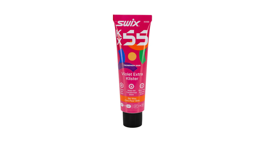 KX55 Violet Extra Klister je všestranný závodní klister navržený pro širokou škálu sněhových podmínek, konkrétně od -6°C do +4°C. Ve srovnání s oblíbeným univerzálním klisterem K22 funguje KX55 lépe v chladnějších teplotách a na jemnějším sněhu, poskytuje vynikající rovnováhu přilnavosti a skluzu. Je ideální pro závodní lyžaře hledající spolehlivý výkon v proměnlivých podmínkách.