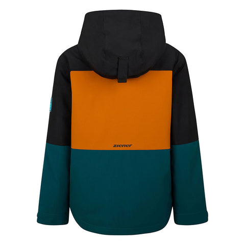 Funkční, polstrovaná lyžařská bunda ZIENER ALIM-Z JUNIOR pro chlapce vás spolehlivě zahřeje v chladném počasí díky vysoce kvalitní výplni o gramáži 120 g/m². Je také vybavena prodyšnou, voděodolnou a větruodolnou membránou ZIENER AQUASHIELD® (vodní sloupec 10 000 mm / prodyšnost 10 000 g/m²/24h), která zajišťuje teplé a suché klima. Hřejivá podšívka na zádech a límci poskytuje dodatečnou izolaci a měkké elastické manžety zaručují perfektní padnutí. Nejdůležitější švy jsou podlepené. Bunda boduje dalšími detaily, jako jsou dvě kapsy na zip, kapsa na skipas, vnitřní kapsy na sluneční brýle, lyžařské brýle a chytré telefony, kapsa na sluneční brýle a lyžařské brýle a sněhový pás. Další drobnosti lze bezpečně uložit do náprsní kapsy na zip. Bunda je impregnovaná a neobsahuje PFAS. Vnější materiál má certifikaci bluesign® a Standard 100 od OEKO-TEX®. Je také vybavena reflexními designovými prvky. Kapuce splňuje normu DIN EN 14682 pro bezpečnost dětského oblečení.