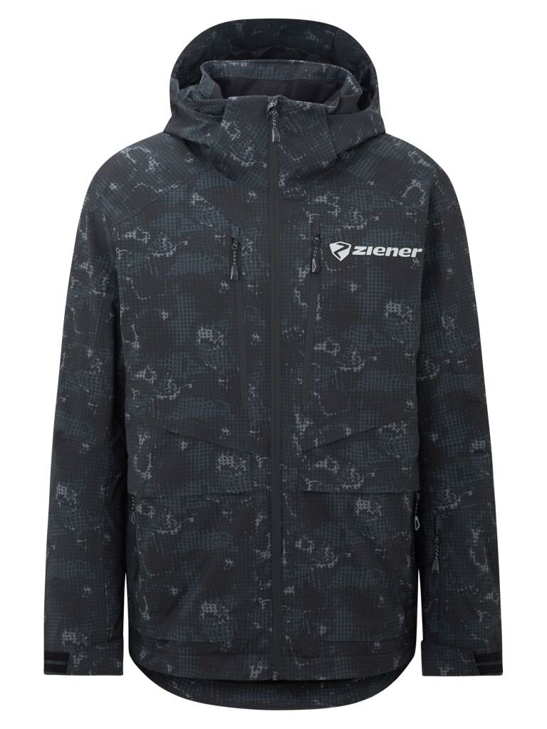 Vysoce funkční, polstrovaná (120 g/m²) lyžařská bunda ZIENER TEAMWEAR TRIVOR-Z MAN je vybavena prodyšnou, větruodolnou a voděodolnou membránou Dermizax® (vodní sloupec 20 000 mm / prodyšnost 10 000 g/m²/24h) a má speciální tepelné zóny pro optimální komfort na sjezdovce. Uvnitř bundy je velká síťovaná kapsa a kapsa na zip na elektronická zařízení. Dvě boční kapsy s voděodolnými zipy a extra velká zadní kapsa poskytují dostatek úložného prostoru. Kapsa na skipas a dvě náprsní kapsy s hadříkem na čištění brýlí a vnitřní kapsa speciálně na chytré telefony dělají z bundy nepostradatelného společníka na sjezdovce. Extra dlouhé ventilační otvory v podpaží zajišťují potřebné větrání. Měkká podšívka límce s ochranou brady, vnitřní manžety a vysoce kvalitní měkký suchý zip na rukávech zajišťují obzvláště vysokou úroveň pohodlí. Mezi další technické detaily patří sněhový pás a odnímatelná, nastavitelná funkční kapuce. Všechny švy jsou kompletně svařené a voděodolné.